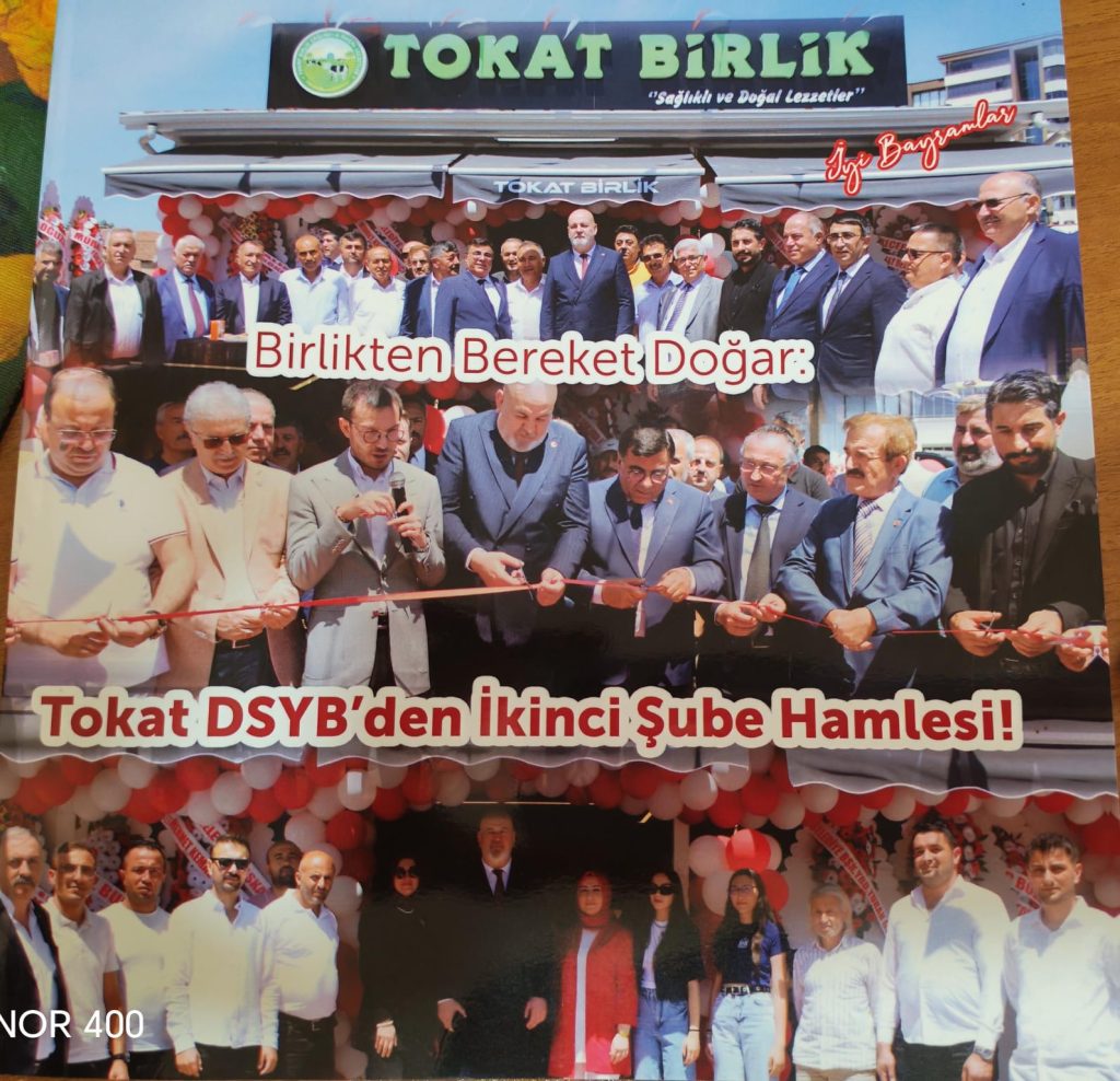 Tokat Damızlık Sığır Yetiştiricileri Birliği (DSYB) markasıyla hizmet veren Tokat Birlik Marketi’ne şehrin çeşitli firmaları katılım verdi. TZYMB Genel Başkanı Kamil Ülker, DSYMB Genel Başkanı Kamil Özcan ve Tokatlı vatandaşlar da katıldı. Güvenli gıdaya doğrudan erişimi amaçlayan bu girişim, üreticiyle tüketici arasında sağlam bir köprü kuruyor.